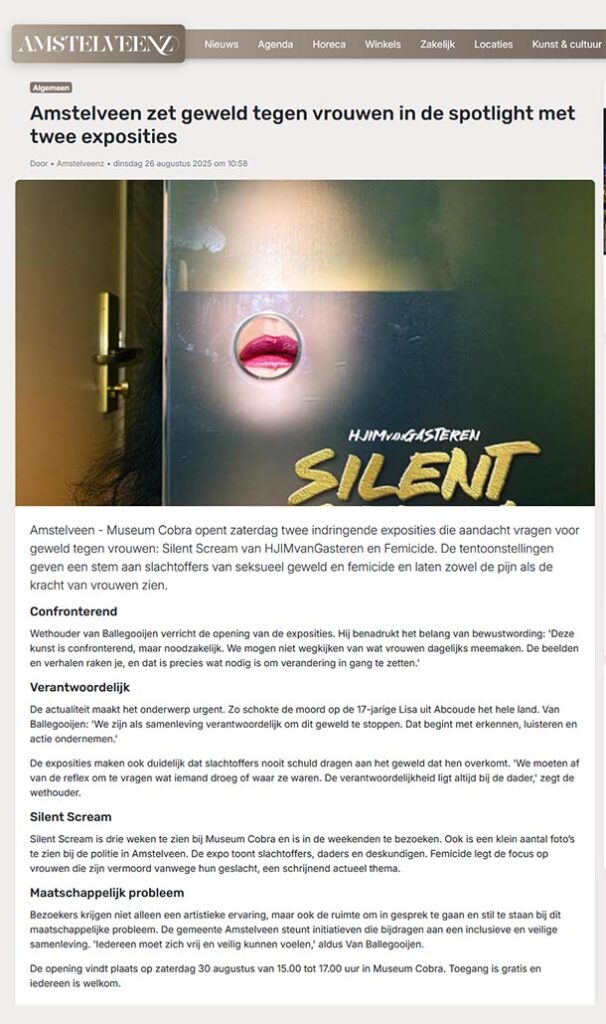 De reizende tentoonstelling Silent Scream is is drie weken tijdens de weekenden te bezoeken bij Museum Cobra in Amstelveen.