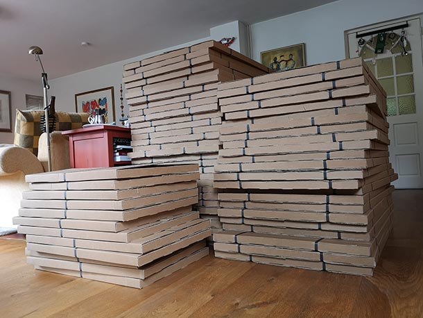 Ze zijn binnen! 65 foto's t.b.v. expositie Silent Scream bij het Gouvernement in Maastricht (vanaf 15 november 2024). Nu nog de dozen stuk voor stuk beplakken met klittenband zodat ik ze kan hergebruiken voor de reizende expositie. Wie komt me helpen?